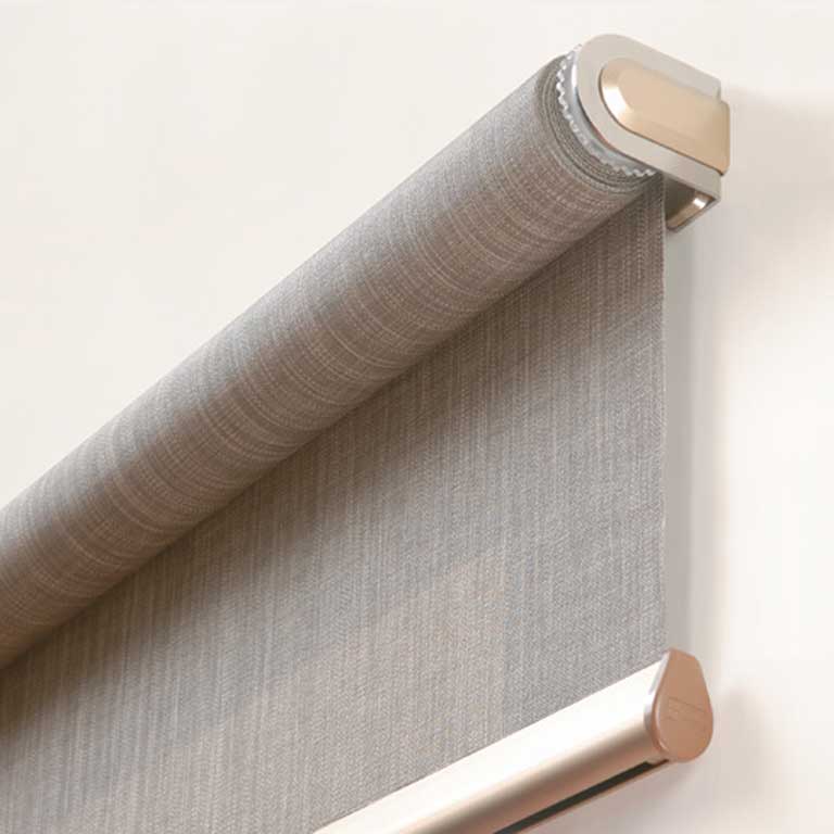 Le store enrouleur sur-mesure est doté d’un tube d’enroulement autour duquel la toile (tamisante à 100% opaque) s’embobine grâce à une manœuvre manuelle (chaînette, manivelle, treuil, ressort…) ou actionnement motorisé.