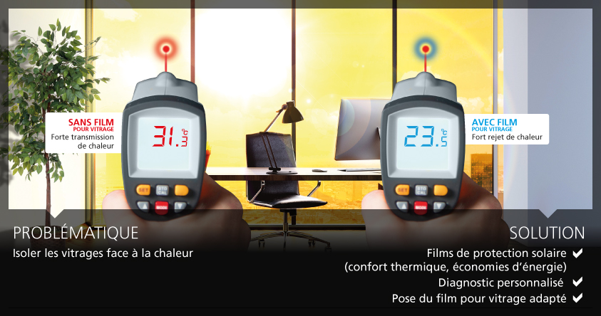 Les bâtiments équipés de parois vitrées sont généralement soumis à de fortes hausses de températures en été, ou subissent en hiver la pénétration du froid dans la pièce. Ces mêmes bâtiments, selon leur exposition, laissent pénétrer les rayons lumineux qui créent un éblouissement gênant pour le travail. Et bien plus souvent qu’on ne l’imagine, ces bâtiments subissent ces 3 gênes en même temps : trop chaud en été et trop froid en hiver, et donc surconsommation énergétique pendant la moitié de l’année, et gêne au poste de travail.